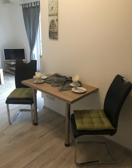 Appartement Scheune befindet sich in der ersten Etage und besticht durch einen großzügigen, offenen Wohnbereich, der nahtlos mit einer voll ausgestatteten Küche integriert ist. Der Wohnraum ist mit einem hochwertigen Schlafsofa ausgestattet, das zusätzlichen Komfort bietet, und verfügt über Kabel-TV. Das geräumige Schlafzimmer ist mit einem elektrisch verstellbaren Boxspringbett ausgestattet und bietet mit einem dreiteiligen Kleiderschrank ausreichend Stauraum. Das Tageslichtbadezimmer ist mit einer modernen Dusche, einem Waschbecken und einem WC ausgestattet. Darüber hinaus verfügt dieses Appartement über einen nach Südosten ausgerichteten Balkon, der einen Blick auf unseren ansprechend gestalteten Innenhof bietet.