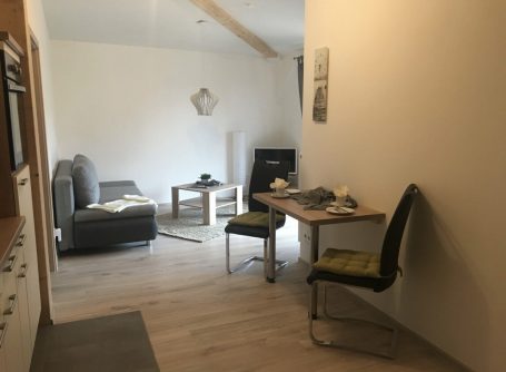 Das Appartement befindet sich in der ersten Etage und wurde im Jahr 2018 aus dem ehemaligen Kornspeicher sowie der angrenzenden Scheune sorgfältig umgestaltet.